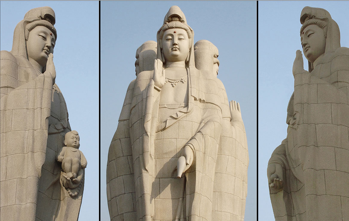 海河三身观音 材质:G614# 高:1990cm 位于天津市潮音寺 设计:贺中令 2005.10